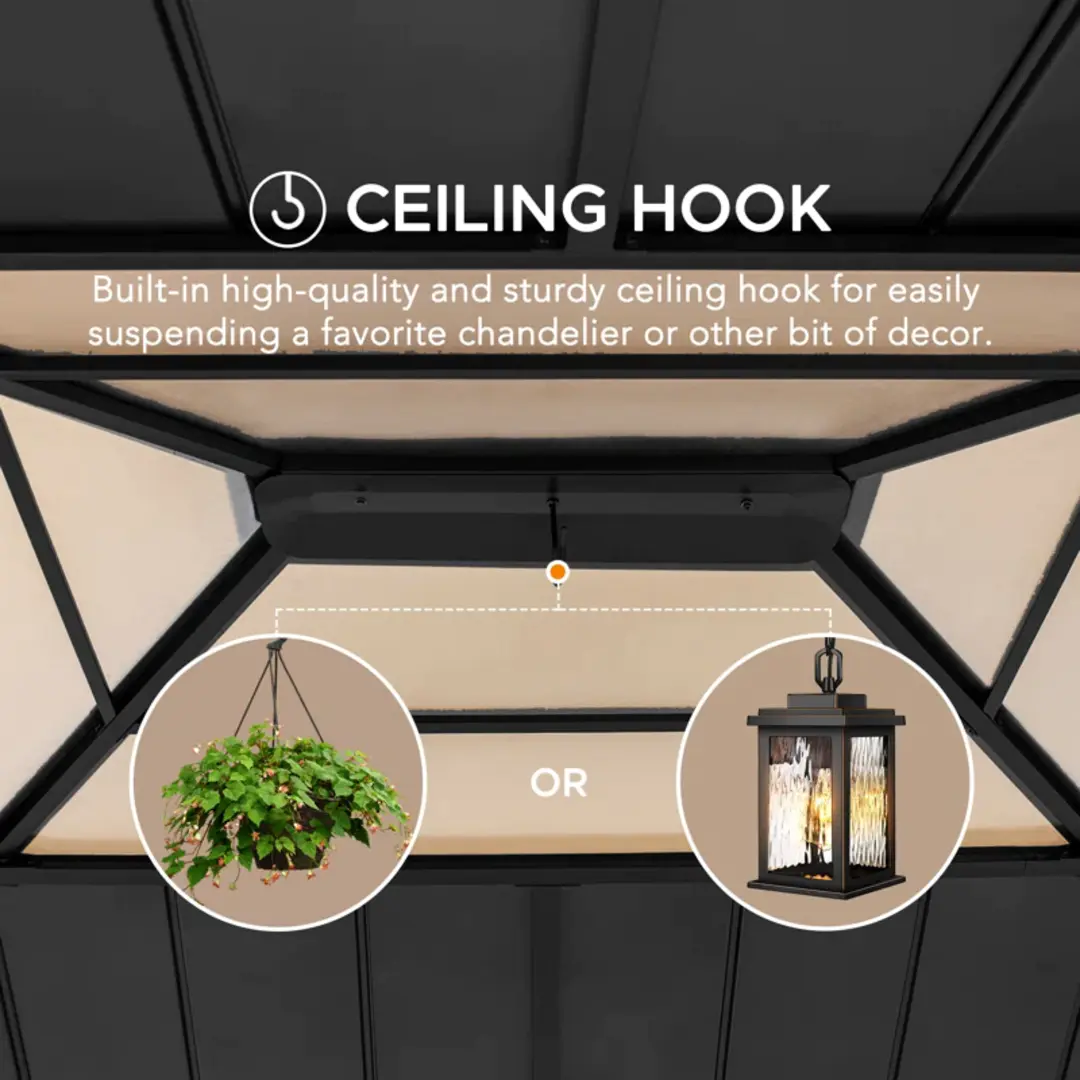 - Light Up Your Outdoor Patio: A sturdy ceiling hook is provided for suspending lighting (not included) to illuminate your evening gatherings